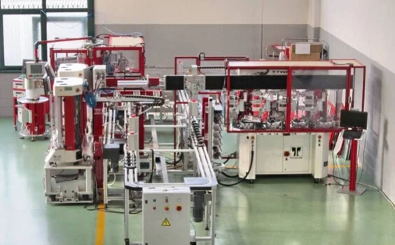 Máquina de montaje para sistema de control de gas combinado para electrodoméstico secadora de ropa.