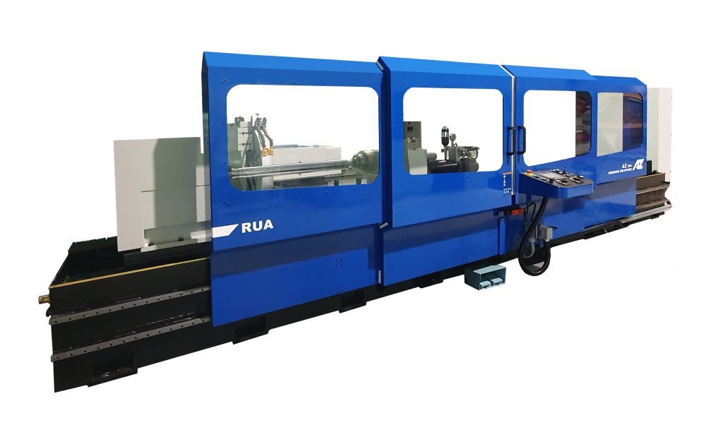 RUA es una rectificadora universal convencional controlada por PLC (control de interpolación G-CODE) por codificadores electrónicos que realizan múltiples funciones de trabajo. La máquina está diseñada con movimientos de muelas en la base mediante un sistema de husillo de bolas y guías lineales. La pieza está sujeta por el cabezal fijo en la base y el contrapunto que se mueve sobre el soporte de la mesa mediante guías lineales. Esta configuración de máquina rectificadora universal convencional permite reducir las dimensiones generales de la máquina en comparación con la configuración de mesa móvil. La base es de material compuesto específicamente diseñado para obtener el mejor resultado entre deformaciones estructurales y descarga de vibraciones.