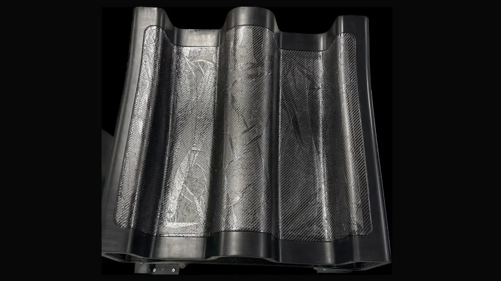 Este molde de curado específico, utilizada para producir la cubierta de fibra de carbono para los cárteres de los superdeportivos, fue desarrollada en colaboración con Airtech. El molde para curar preimpregnados termoestables fue fabricada con material Airtech Dahltram C250-CF, un policarbonato (PC) reforzado con un 20% de fibra de carbono (CF). Este compuesto ofrece excelentes propiedades térmicas y mecánicas y está calificado para procesos de autoclave de media temperatura, ya que puede alcanzar hasta 180° C y 6 bares en términos de temperatura y presión de trabajo, asegurando estabilidad en variados ambientes industriales y en el tiempo. La herramienta se utilizó con éxito para probar y laminar la pieza terminada del cárter de fibra de carbono.
