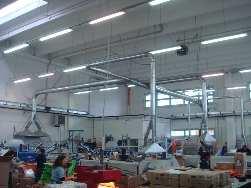 Las campanas y el cárter de aspiración de IMAS AEROMECCANICA, tanto en versión estándar como en ejecución especial, permiten la captación de contaminantes como por ejemplo humos de la impresión o polvo resultante de operaciones de corte, mientras que los filtros colectores de polvo (por ejemplo M, D, y DC) permiten la filtración. Los filtros de la serie carbocubo permiten la filtración de contaminantes con la presencia de COV (compuestos orgánicos volátiles), tales como los procedentes del secado de la tinta.