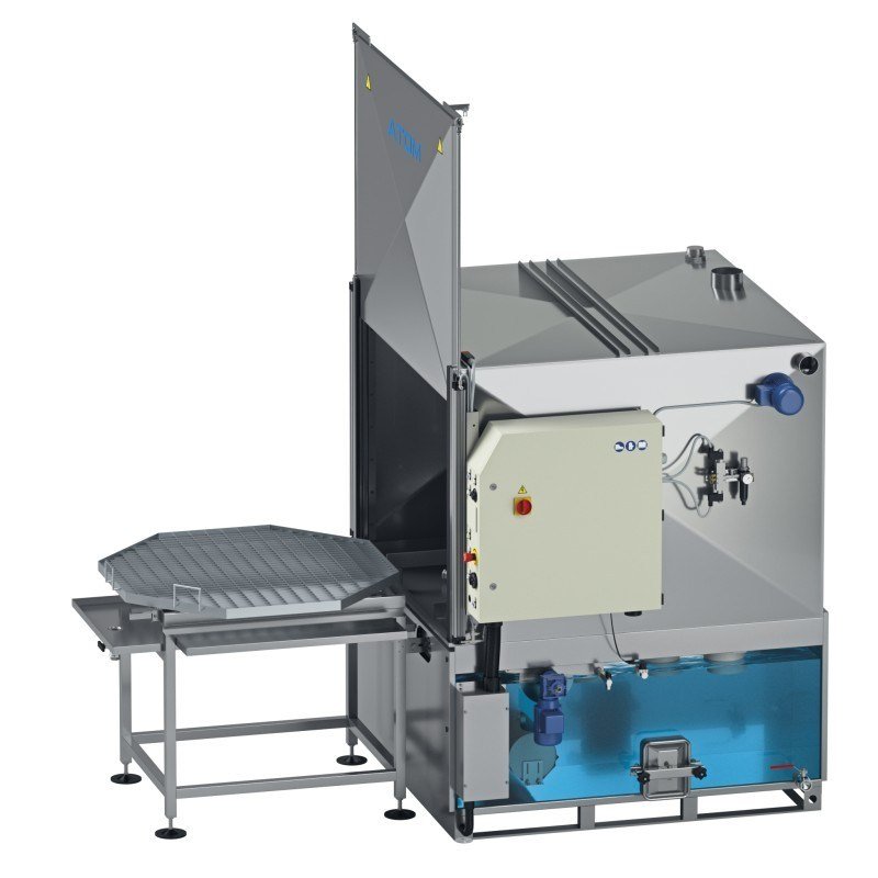 La lavadora industrial Atom es una lavadora de cabina que permite el lavado automático de piezas mecánicas de medianas y grandes dimensiones.