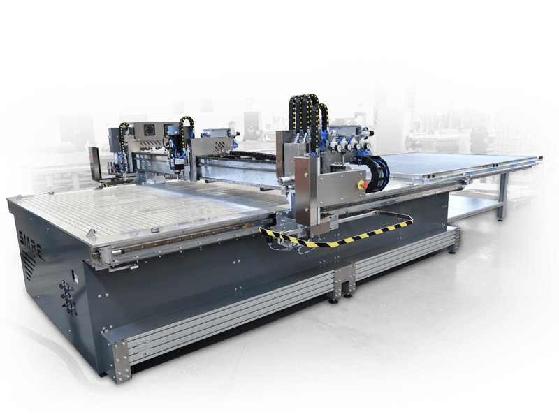 La máquina de corte SM-365-TA es accionado por un mecanismo altamente eficiente de piñón y cremallera que combina potentes servomotores sin escobillas y electrónica integrada en los ejes X, Y, Z y W. Diseñado para movimientos extremadamente precisos con una tolerancia de 0,01 mm, la máquina de corte SM-365-TA cuenta con piñones y cremalleras con dientes helicoidales endurecidos y estructura monolítica de aluminio sólido con un grosor de 30 mm para garantizar una tolerancia de superficie de 100 micras.